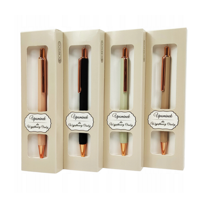 Całość uzupełniają eleganckie, złote detale oraz prezentowe etui, które sprawia, że długopis idealnie nadaje się na upominek.