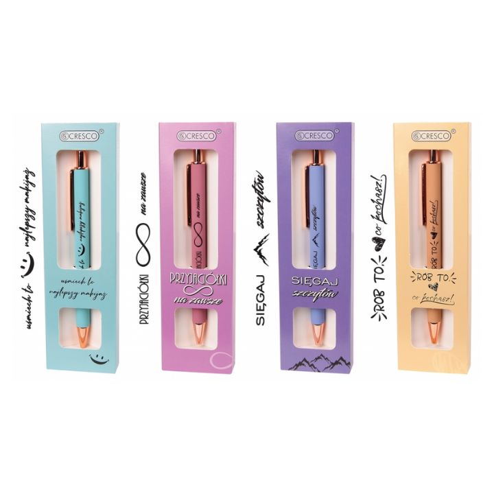 Długopis automatyczny dostępny jest w miksie wzorów z mottem dla kobiet.
