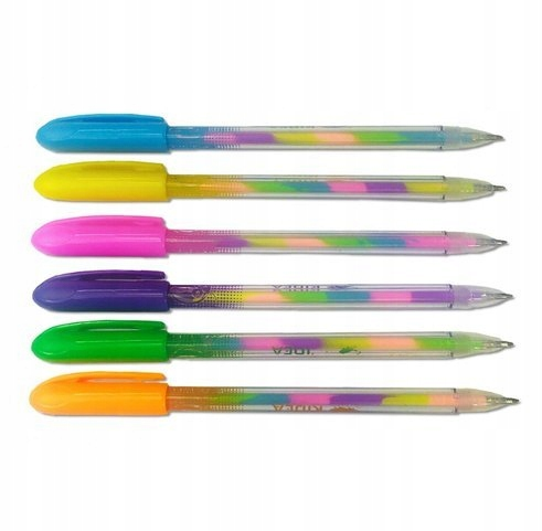 Zapachowe długopisy z tęczowym tuszem w 6 kolorach, które zmieniają się w trakcie pisania (różowy, pomarańczowy, zielony, niebieski, żółty, fioletowy)