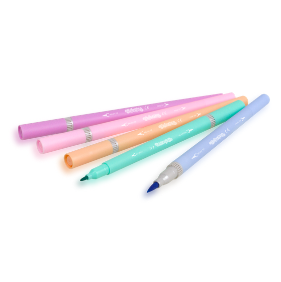 Flamastry dwustronne dostępne są w zestawie 10 pastelowych kolorów.