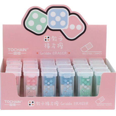 Gumka do ścierania Tochain w kształcie kostki do gry to oryginalny i zabawny dodatek do przyborów szkolnych.