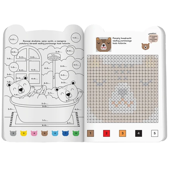 Kolorowanka zawiera także kolorowe naklejki, które uatrakcyjniają rozwiązywanie zadań.