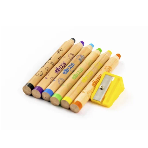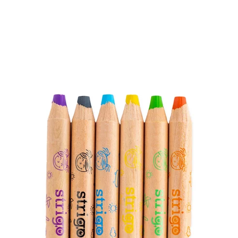 Kredki Jumbo dostępne są w zestawie 6 intensywnych kolorów. Wykonano je z wysokiej jakości miękkiego drewna lipowego.