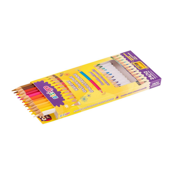 Opakowanie zawiera 12 dwustronnych kredek, co daje aż 24 różne kolory.