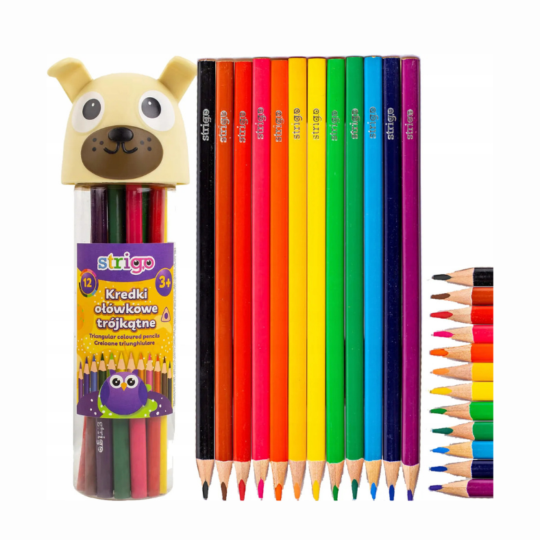 Zestaw opakowany jest w praktyczne, tematyczne pudełko z motywem pieska — uroczy dodatek, który spodoba się dzieciom i ułatwi przechowywanie kredek.