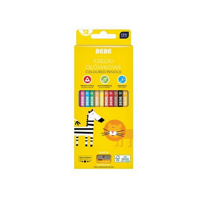 Trójkątny profil kredek wspiera prawidłowy chwyt i zwiększa komfort użytkowania, a matowe wykończenie zapobiega ślizganiu się w dłoni podczas rysowania.