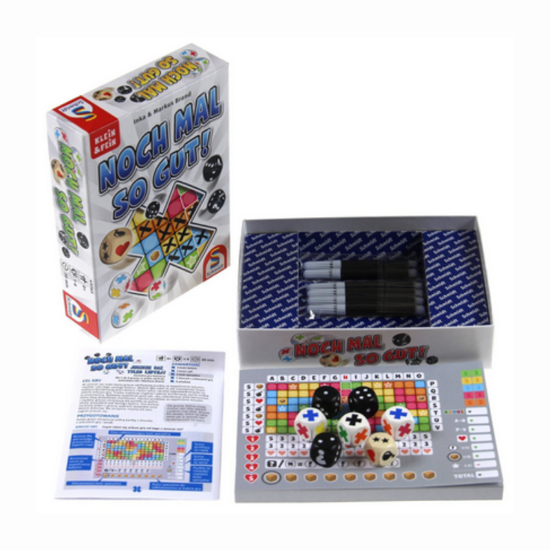 Noch mal so gut! to ulepszona wersja popularnej gry Noch mal!, w której gracze rzucają kośćmi i zaznaczają wyniki na indywidualnych arkuszach, próbując zdobywać punkty szybciej niż pozostali uczestnicy.