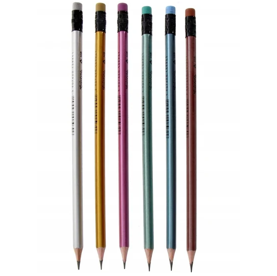 Ołówek trójkątny z gumką metalic HB marki Colorino to wysokiej jakości ołówek grafitowy przeznaczony do codziennego użytku.
