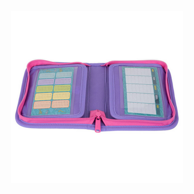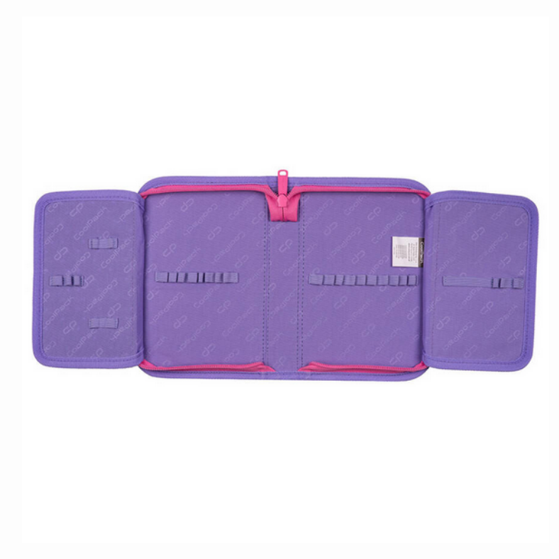 Model został wyposażony w jedną dużą przegrodę główną z elastycznymi gumkami na długopisy, kredki i flamastry.