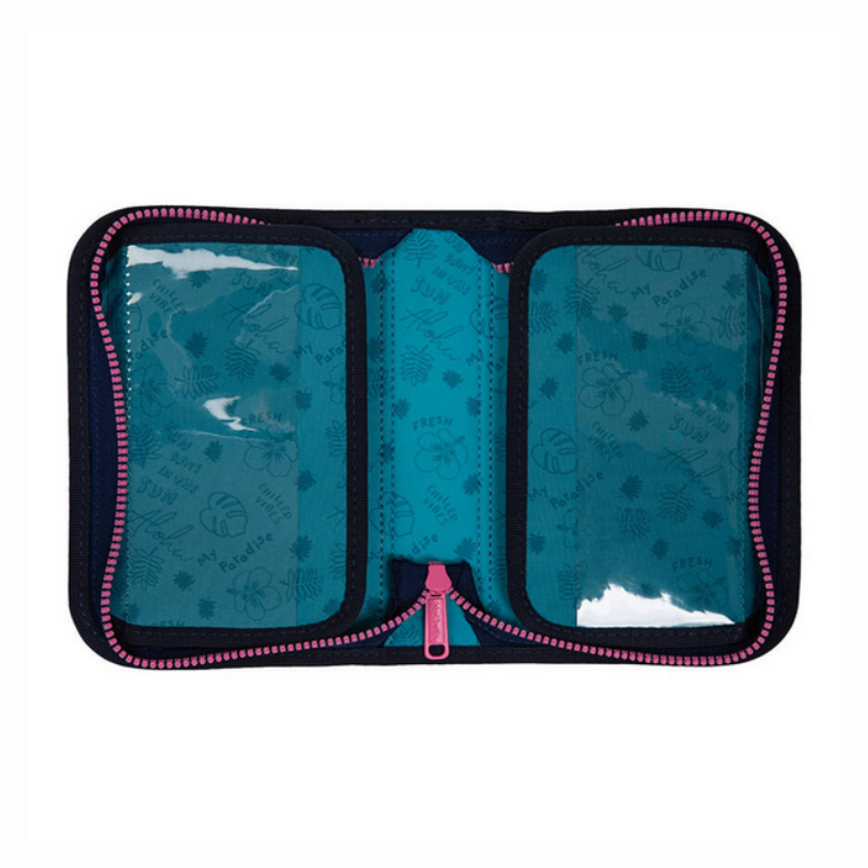 Model został wyposażony w jedną dużą przegrodę główną z elastycznymi gumkami na długopisy, kredki i flamastry.