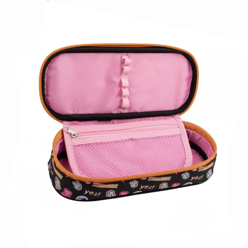 Korpus piórnika został wyściełany gąbką, dzięki czemu jest przyjemny w dotyku i chroni zawartość.