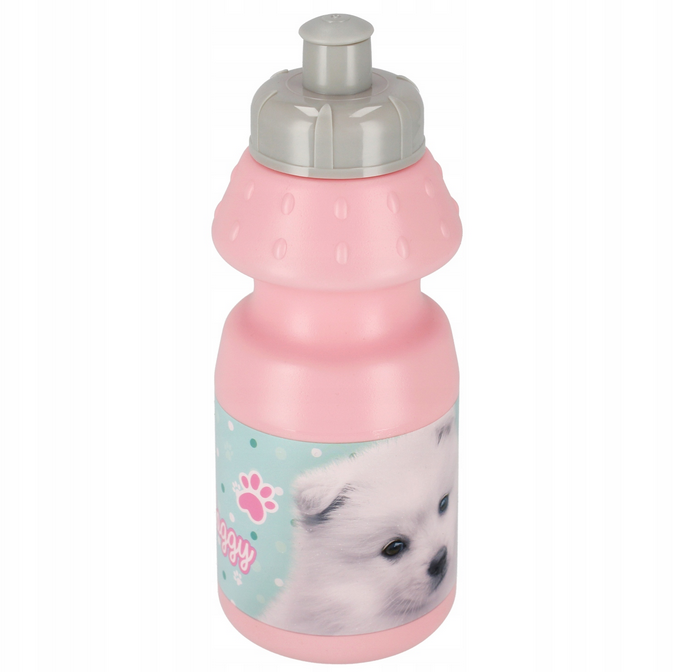 Zawiera bidon o pojemności 350 ml z dzióbkiem i wygodnym guziczkiem, który ułatwia otwieranie, zamykanie oraz picie napojów. Bidon został ozdobiony kolorową grafiką w pieski, co przyciąga uwagę najmłodszych.